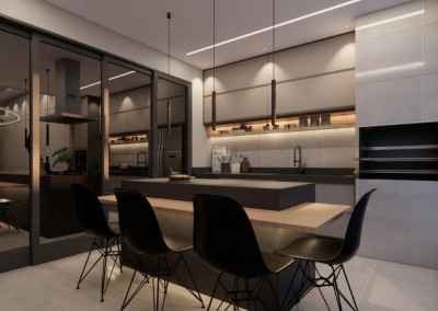 - Área gourmet com churrasqueira e pia;